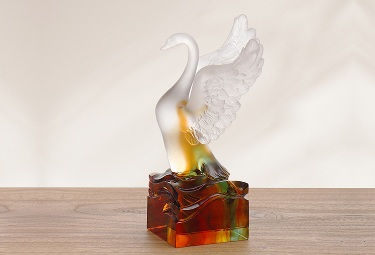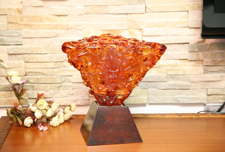 Glaskonstverken har gradvis utvecklats från traditionella hantverksgåvor till att omfatta dekorativa möbler, buddhistisk kultur, kristallservis och fashionabla smycken. Företagets produktionsbas ligger i den vackra och välmående vattenstaden Jinxi i Kunshan, Jiangsu-provinsen. Den har ett forsknings- och utvecklingsutrymme för glasproduktion som sträcker sig över 35 000 kvadratmeter. Anläggningen är utrustad med oberoende designmöjligheter, lermodelleringstekniker och tekniska forsknings- och utvecklingsresurser, vilket visar mogna färdigheter i både produktutveckling och tillverkningsprocesser.