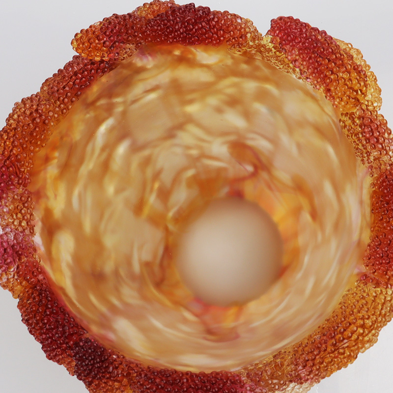 Under gjutning av förlorat vax smälter pigment och tränger igenom vid höga temperaturer, vilket frigör gradienter från mekanisk delning. De bärnstensfärgade glororna där guld och rött möts är oöverskådliga kollisioner mellan kopparelement och glasmatrisen i den tusengradiga ugnen - perfekt efterliknar den ojämna solexponeringen som ger grödor deras autentiska struktur. Detta "kontrollerade kaos" ger artificiellt hantverk naturlig vitalitet - ungefär som sorghum som tål vind och regn, solar sig i solen och i slutändan utvecklar sina livfulla nyanser på de öppna fälten.