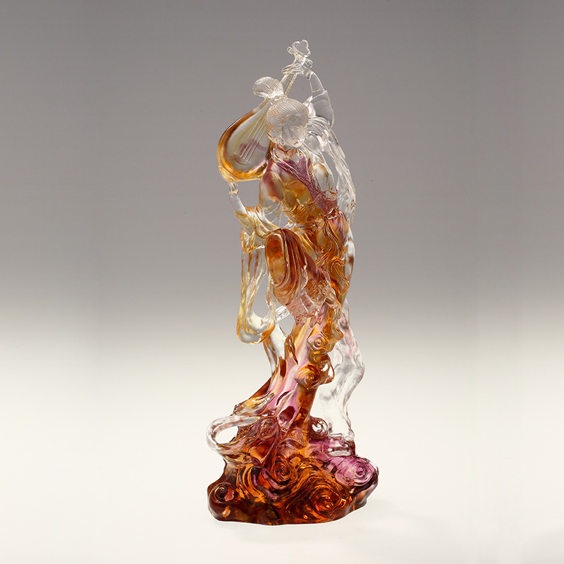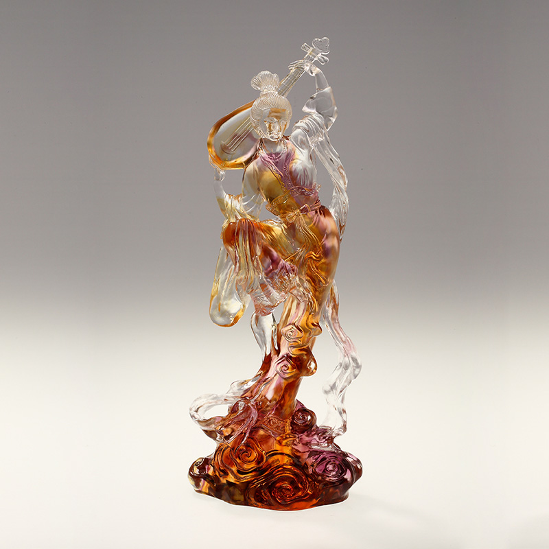 Kvinnofiguren i denna graciösa glasskulptur är lång och rak, med olika sätt, som om hon innehåller oändlig kraft och elegans. Varje detalj skildras levande. Linjerna på hennes kläder är släta, som om de rör sig med vinden, vilket visar en dynamisk skönhet. Färgmatchningen av glaset är smart, vilket kan vara eleganta toner eller skarpa kontraster, som båda kan framhäva hennes ädla och extraordinära karaktär.